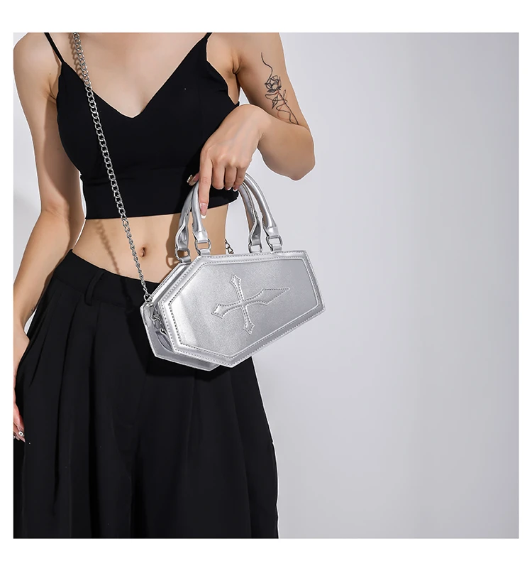 Gothic Shoulder Bag Novelty Coffin Shaped Purses for Women Holiday Handbags Halloween Purse Female